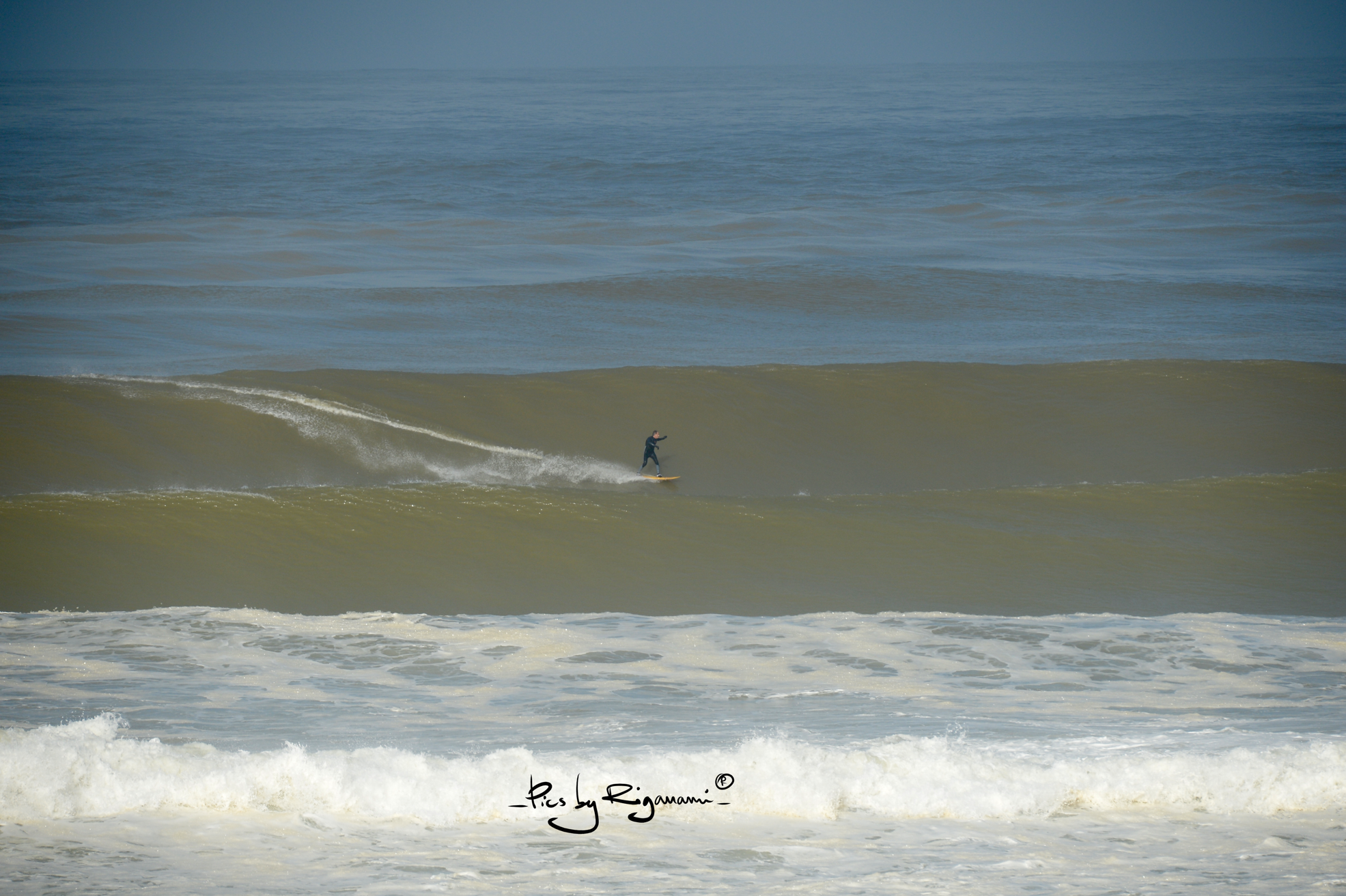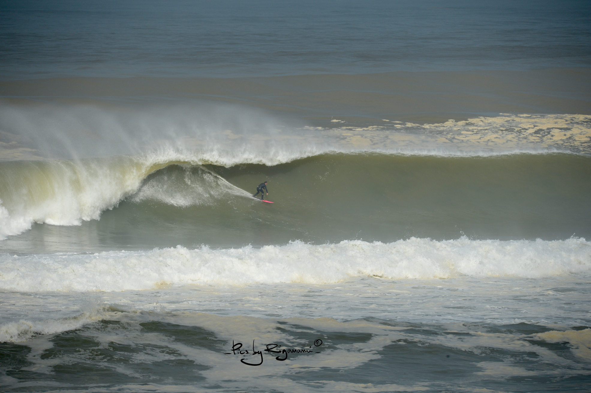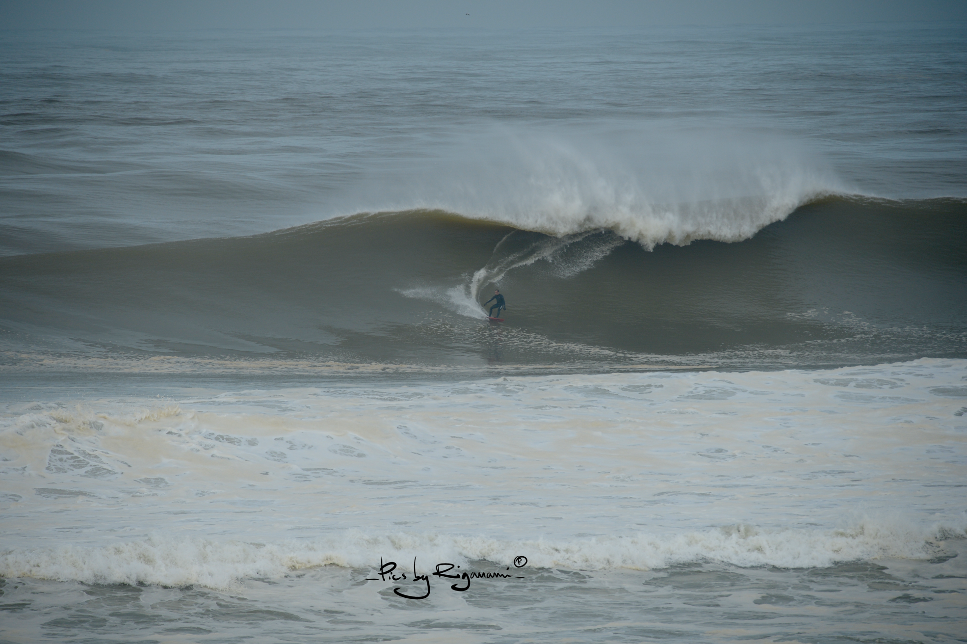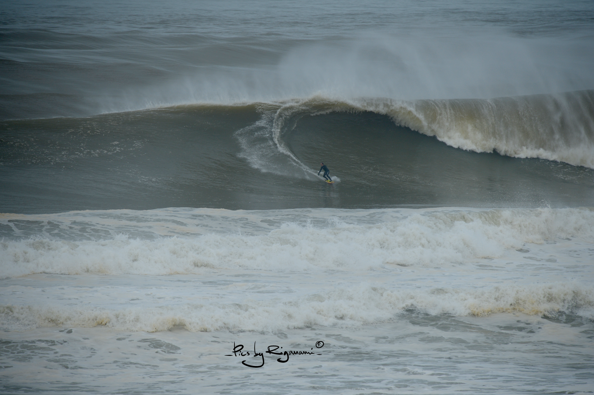 Solution de repli. "Avec Éric Rougé, François Gouffrant et mon partenaire de tow-in, Julien Molia, on a décidé de se rabattre sur Anglet. Et on a eu une magnifique session entre le spot de de l'Océan et celui des Dunes. Sur la marée basse, les bancs de sable se sont calés et le plan d'eau était vraiment clean."