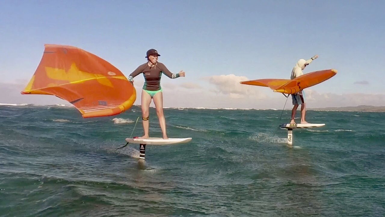 Une fois dans l'eau et leurs foils poussés par la force du vent, les watermen ne semblent plus s'arrêter de glisser. Que ce soit debout ou assis, ils tracent des courbes sans fin dans la houle. Et l'atout de l'aile ne se limite pas à faciliter la glisse mais permet également, à l'image des kitesurfeurs, de s'envoler quelques mètres au dessus de l'océan.