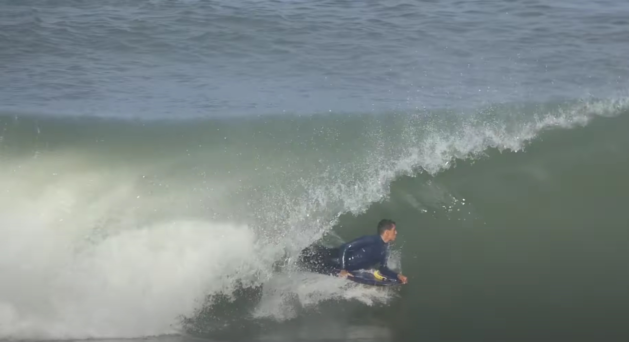 Bref, on l'a compris, le surf a un potentiel exponentiel au pays du soleil couchant. Mais ce n'est pas le seul sport de glisse à briller dans ce pays, le bodyboard s'est lui aussi fait une place à part entière. Des athlètes émergent et le niveau devient solide. C'est ce que nous montre Chajri Badr E'ddine, en faisant l'étalage de ses compétences sur un beach break local digne de ce nom. 23 ans seulement, et une maîtrise du roll spin déjà impressionnante.