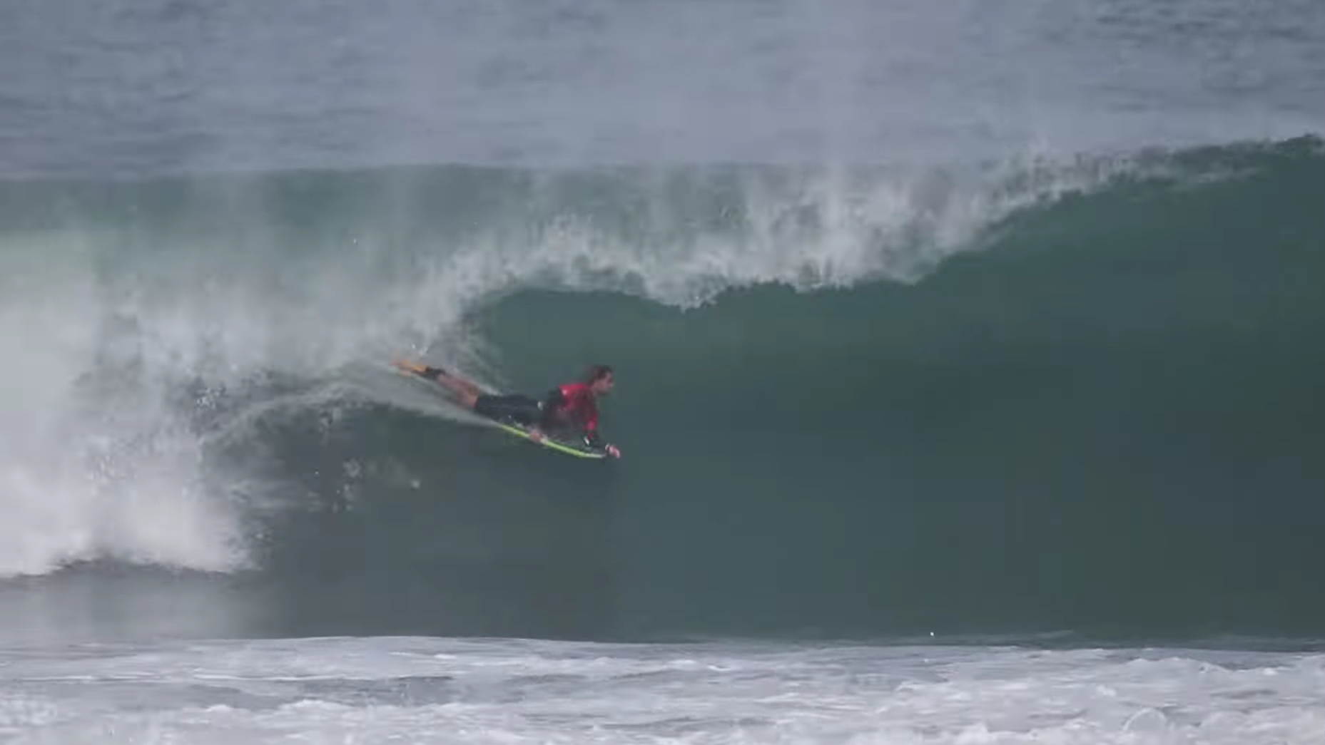 Max a très bien commencé son année, avec une 3ème place en mars sur la gauche d'Arica, derrière son compatriote Amaury Lavernhe. La vague chilienne n'est pourtant pas aussi facile qu'elle ne parait, demandez à Kyllian Guerin si vous avez un doute. Déjà en free surf, avant le lancement de la compétition, Max paraissait bien en forme et très à l'aise sur la vague. Un sentiment qui s'est confirmé au cours de ses séries, comme sur cette sortie de barrel en back.