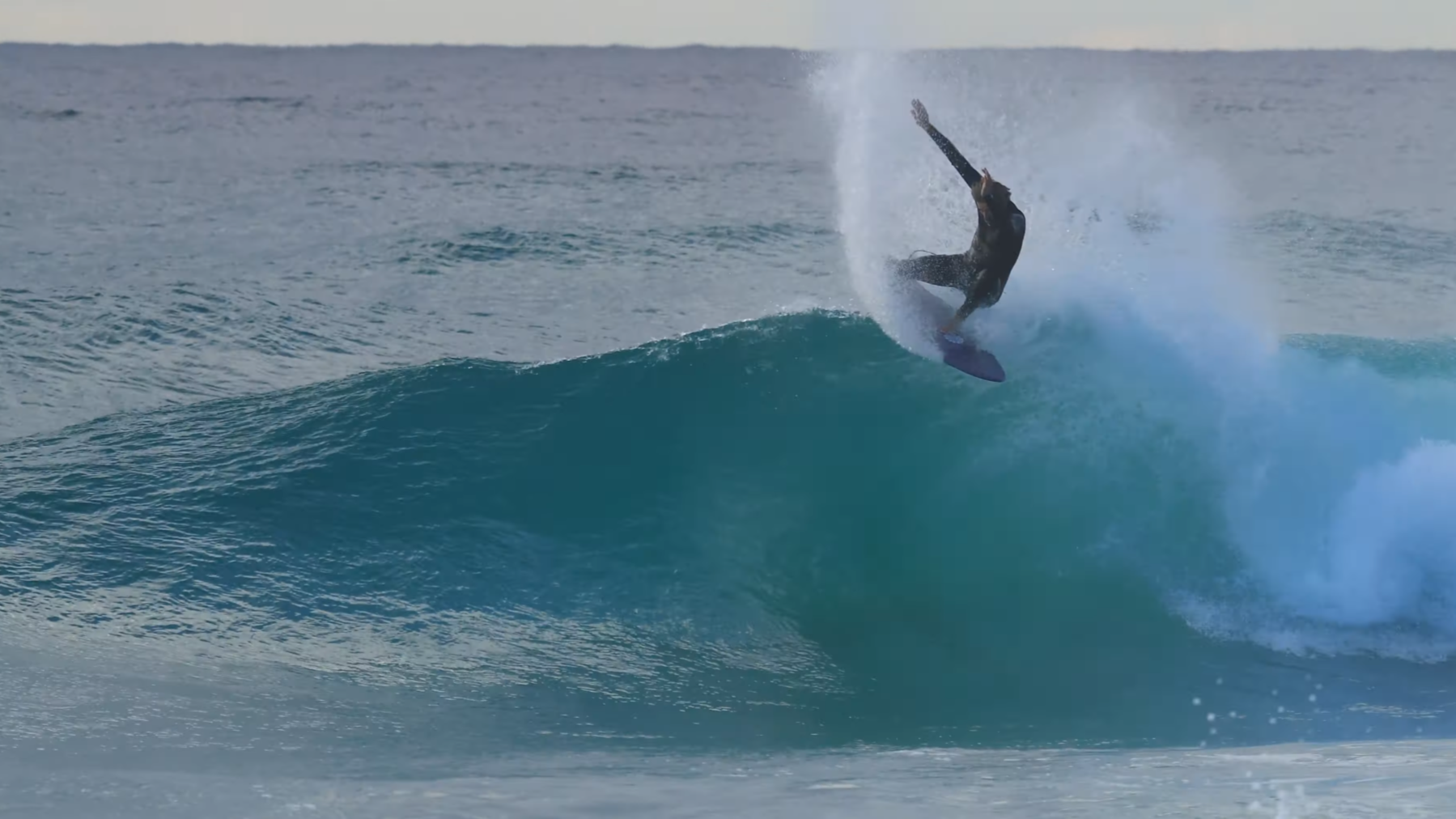 Frankenfish n'est pas encore disponible sur le site qui porte le nom du shapeur et en Europe, il nous faudra attendre que la planche soit mondialement commercialisée pour pouvoir essayer d'envoyer comme Dave sur cette splendide gauche. Le Néo-Zélandais a tout de même mis la partie centrale du pad sur sa planche pour rester radical et garder un minimum de grip. Ce twin n'a de rétro que l'allure, après trois vagues vous constaterez que Dave est en mesure de prendre des trajectoires incisives et de partir bien late dans le barrel.