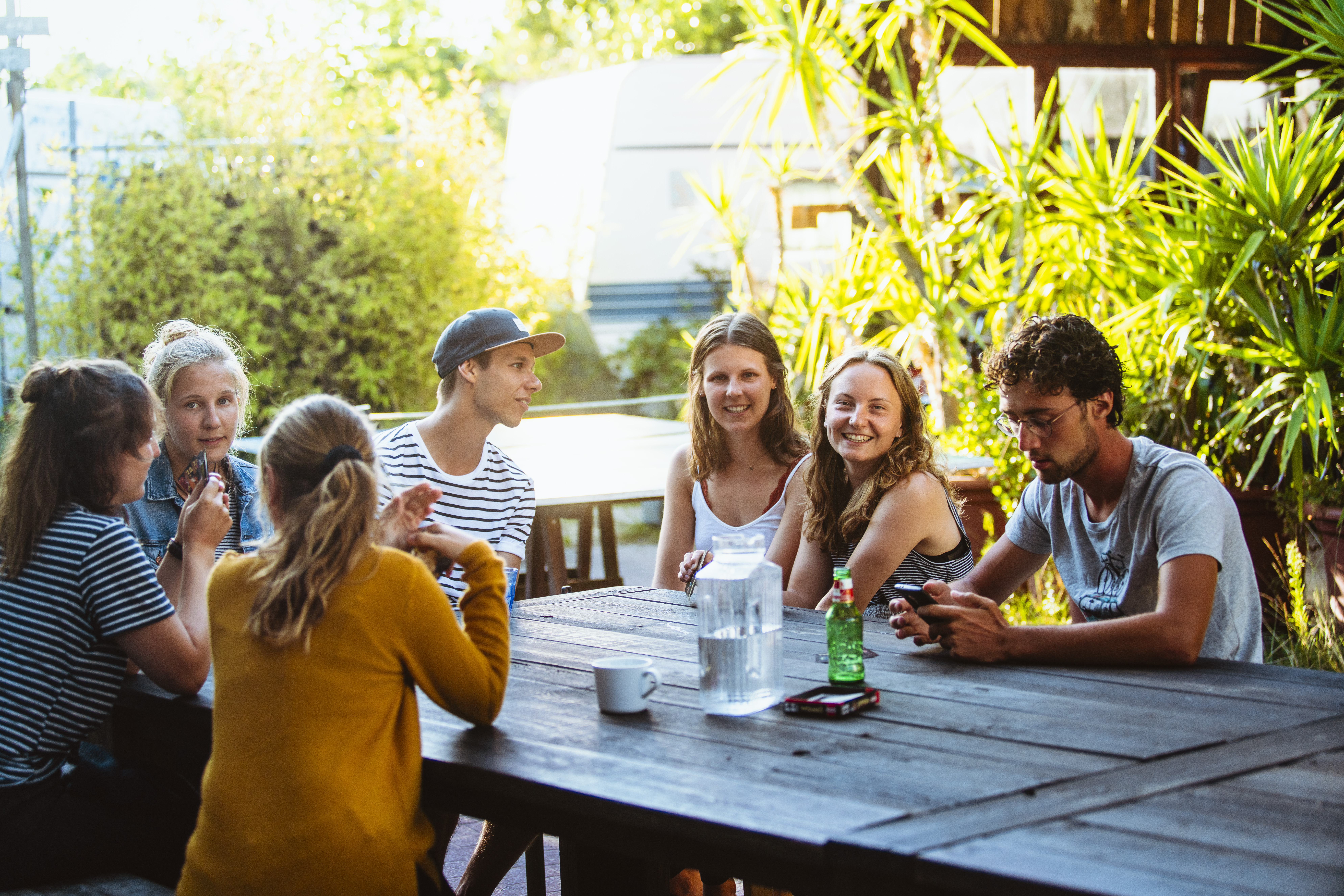 L'hébergement se fait dans une grande maison familiale landaise, dans un quartier calme de Vieux-Boucau-les-Bains. Vous avez le choix entre des petits dortoirs pour maximum cinq personnes, ou des chambres doubles avec salle de bain privative, le tout dans une atmosphère détendue et une ambiance internationale.