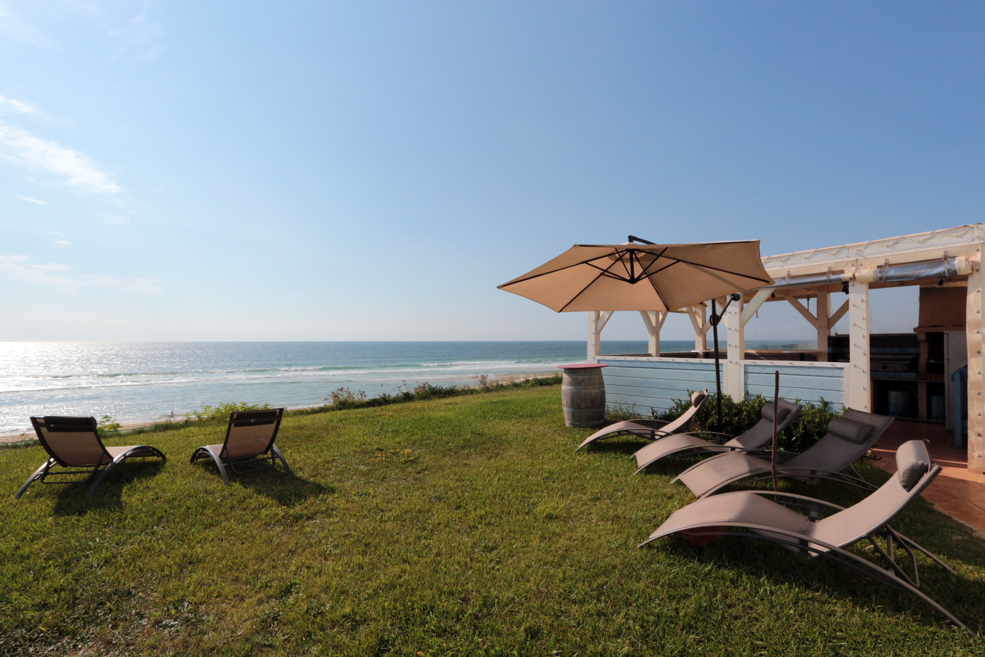 Au fil des journées, les couleurs évoluent avec les éléments et c'est un bonheur absolu que de contempler ces changements du haut de la dune. Dans la Villa qui surplombe toute la plage, on est comblé d'entrevoir depuis chaque pièce l'océan en surveillant constamment le barrel.