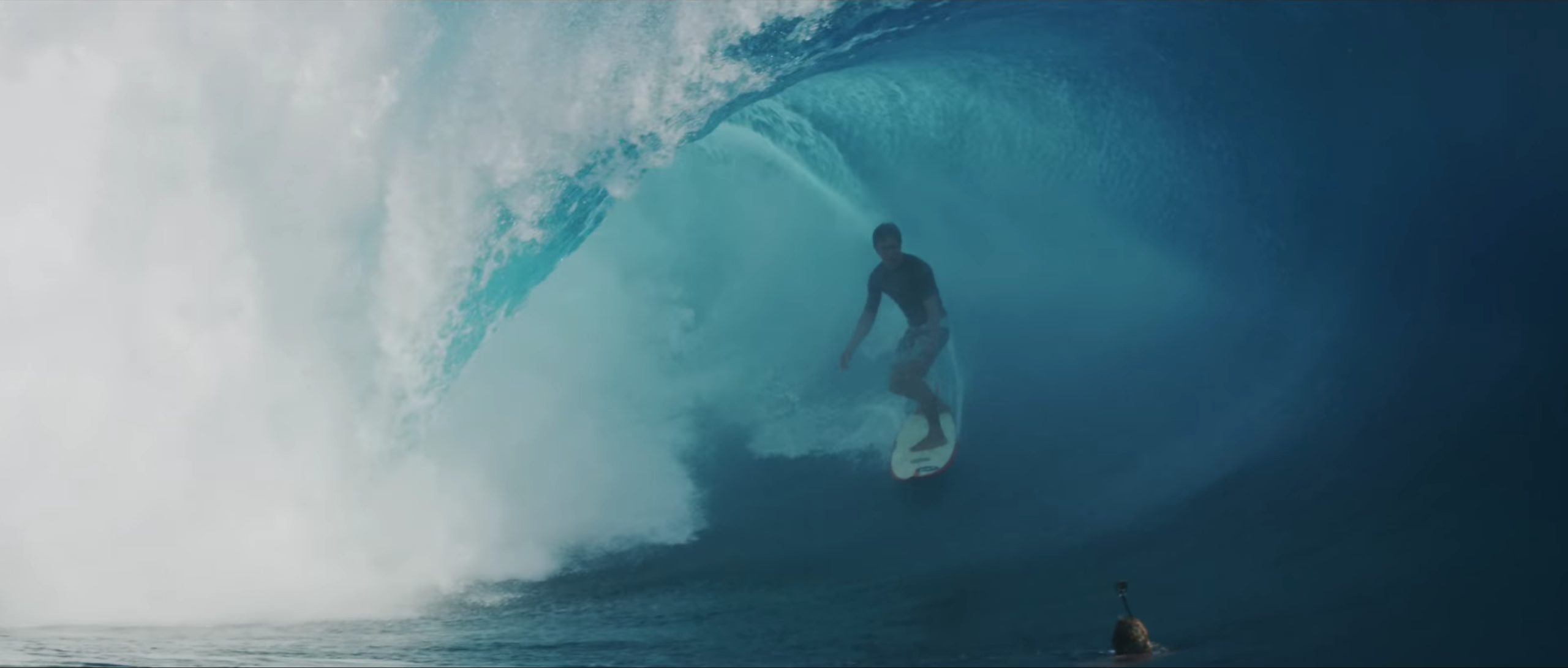 " Après notre séjour à Tahiti, nous nous sommes rendu à l'évidence. Même si nous ne partageons pas la même langue, la culture d'Hawaï et de celle de Tahiti sont similaires. Un parallèle existe. Que ce soit dans la protection des autres, de l'environnement, de nos valeurs, ou dans notre reconnaissance, notre générosité et notre désir de penser aux autres avant soi. En résumé l'esprit Aloha s'étend au delà des eaux hawaïennes. Notre expérience tahitienne a été accueillie avec un sourire chaleureux et de magnifiques fleurs de pikake pour l'équipage. Les Tahitiens sont parmi les meilleurs humains à avoir foulé cette terre, et dans notre cas, à défier la mort en chargeant des vagues monstrueuses. Nous espérons que pendant les 8 prochaines minutes, vous vivrez cette expérience que nous n'oublierons jamais. "