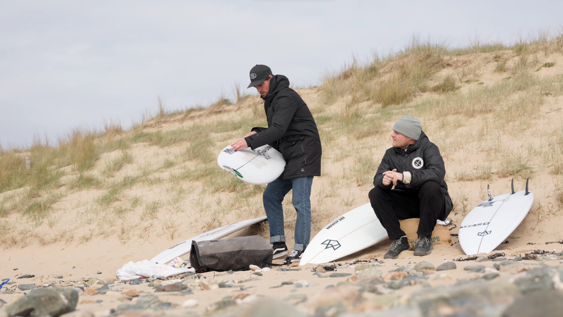 Gaspard Larsonneur et Ian Fontaine ont indéniablement développé une capacité folle à être au bon endroit au bon moment. Pour cela il aura fallu se prendre un bon nombre de fly, passer un temps fou à lire les prévisions et à rouler de plage en plage et de crique en crique avant de pouvoir se faire des sessions quasiment seuls, comme c'est le cas de celle-ci. Robin Aussenac et Gaëtan Duque étaient là pour capturer ce qui fut l'une des meilleures sessions de Gaspard et Ian l'hiver dernier. C'est au milieu de la Lande (à ne pas confondre avec les Landes), que se cache cette grande et belle plage au nom inconnu, où surfer se mérite. Pour y accéder, il faut marcher ou bien courir, comme Gas selon vos préférences.