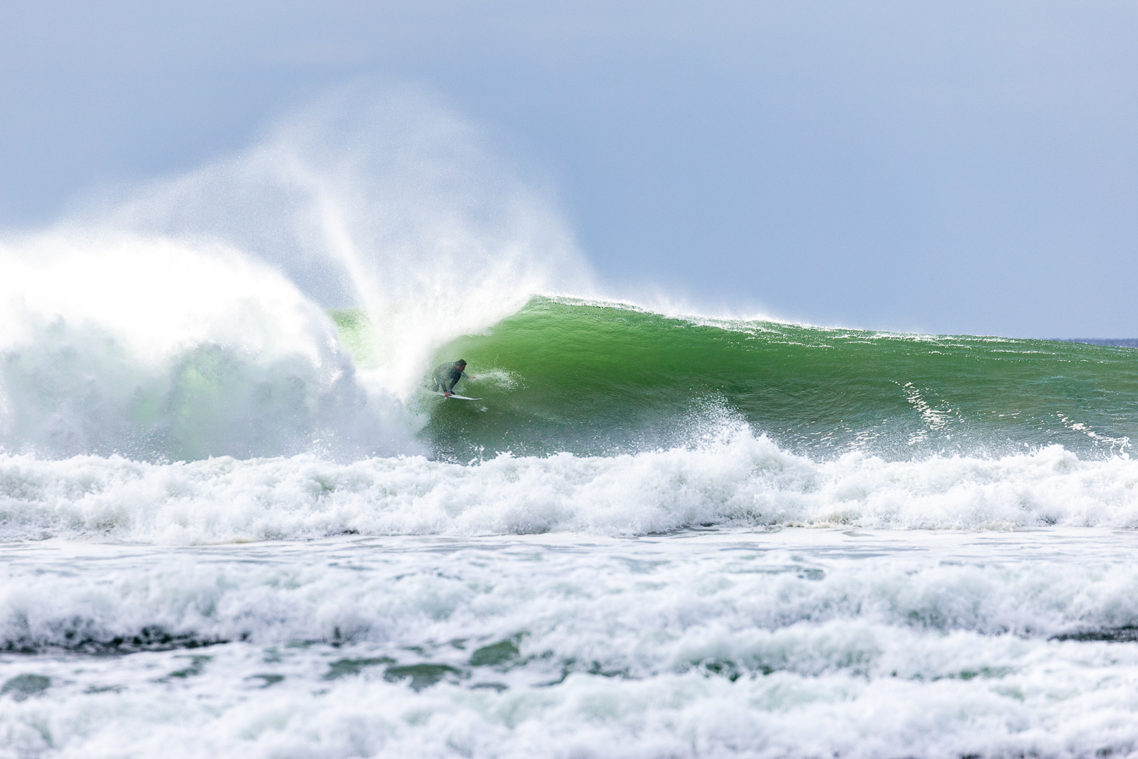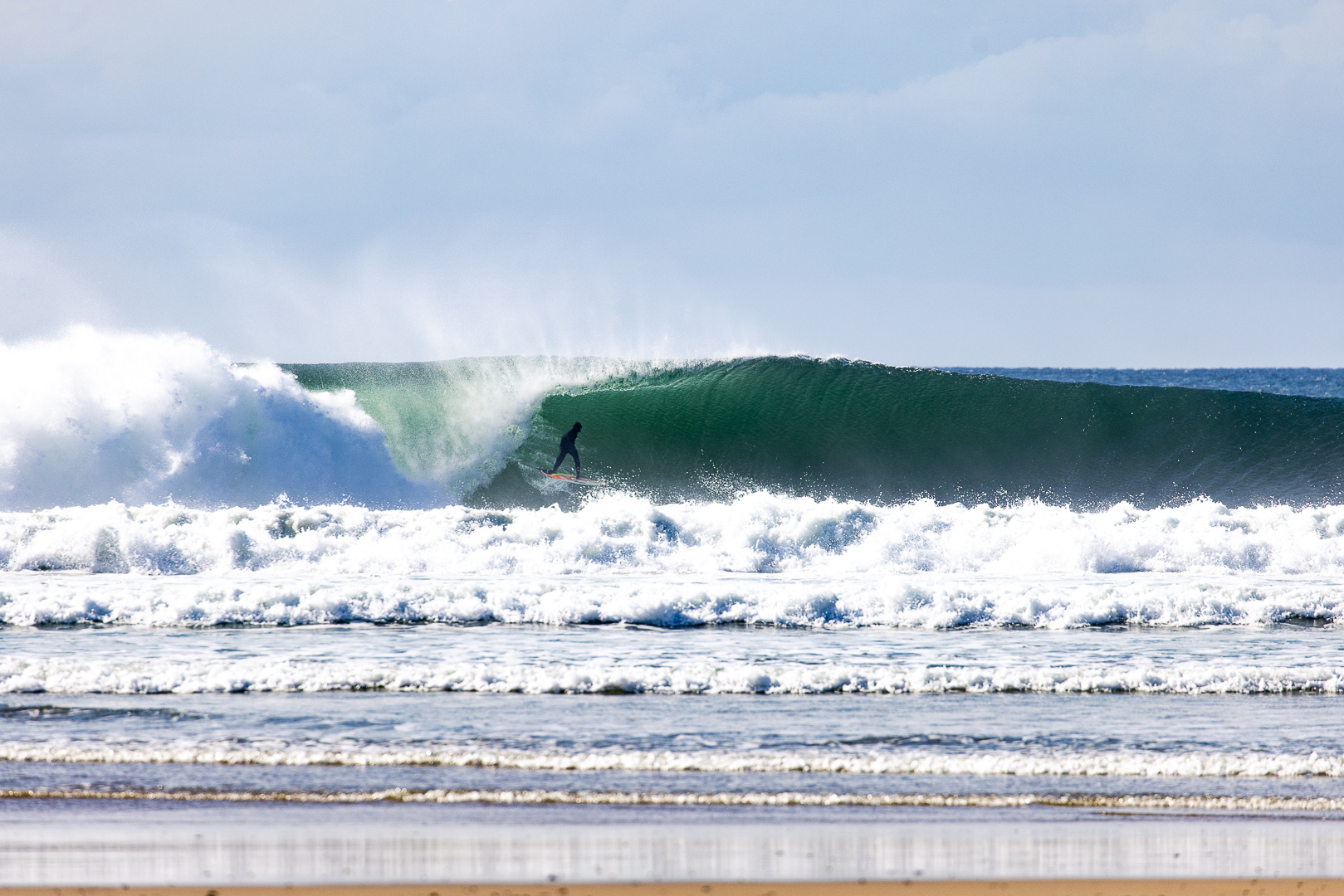 Au pays de la kouign, les tendances s'inversent. Lorsque l'hiver est synonyme de saison morte pour certaines régions de France, il révèle au contraire tout le potentiel de la Bretagne. Ce beach break semble très bien supporter une forte houle pour offrir une gauche si ronde avec un bon 1m80, voire plus. On dirait bien que Gaspard et le groupe ont bien fait de jouer sur la marée descendante. Le surf, c'est comme la pêche, être patient ça paie.