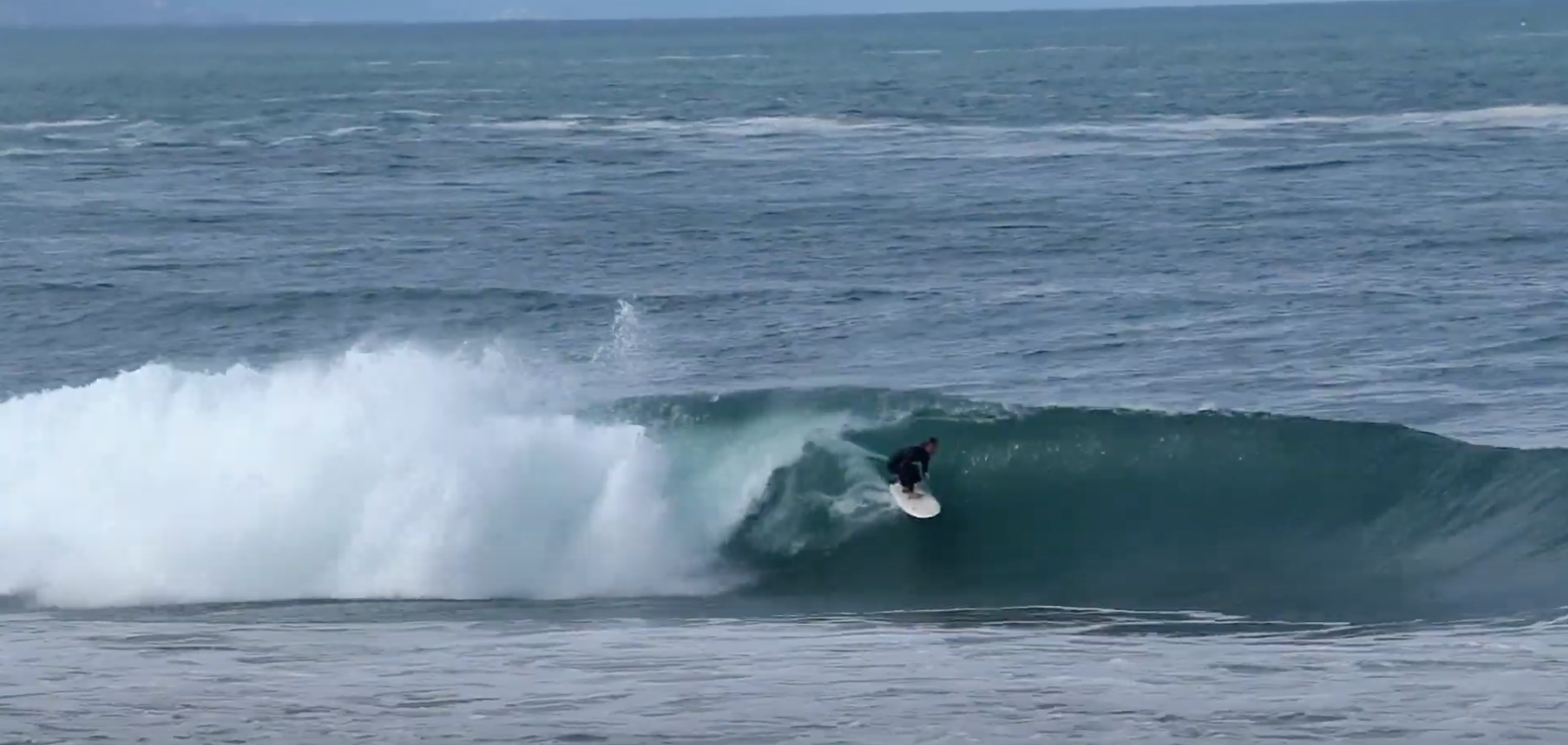 Ce spot situé tout au sud du littoral angloy est généralement surpeuplé mais ce jour-là, le line-up était plutôt épuré. Les locaux profitent de leurs spots avant l'arrivée des saisons plus chaudes qui entraînent dans leur sillage une fréquentation beaucoup plus grande.