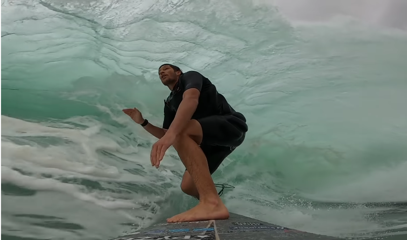 Dès sa première vague, le surfeur de 27 ans a pris la mesure de cette vague inconnue. Dans son creux, à l'entrée du barrel, sa planche a vrillé pour l'envoyer vers les profondeurs. Une grosse chute sur un premier ride difficile qui n'a pas découragé le chargeur. Il s'est directement remis sur sa board pour rendre cette session exceptionnelle.