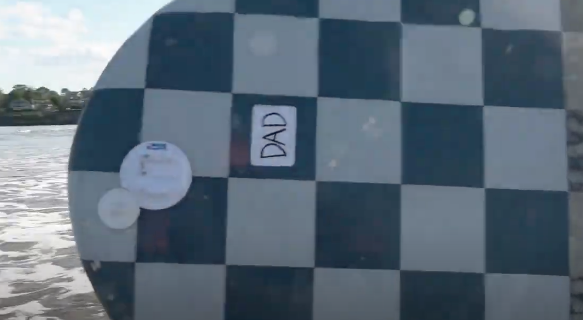 Quand David a perdu cette figure, il s'est senti brisé, seul, paralysé par la douleur du deuil. Le surf s'est avéré thérapeutique. Il décida alors de noter "papa" sur le nose de sa planche pour l'emmener dans une dernière aventure avec lui. C'était sa façon d'honoré le type de vie qu'avait eu son père.