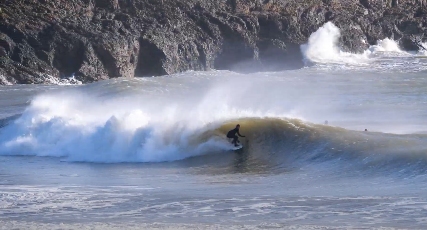 La semaine dernière, le Royaume-Uni a été touché par de violentes tempêtes, qui ont entraîné dans leur sillage des vagues conséquentes dont les rideurs du nord de l'Atlantique ont pu profiter. Cette session au Pays de Galles n'est pas des plus cleans mais ce beach break wedgy a tout de même très bien fonctionné il y a quelques jours. Surfeurs et bodyboardeurs étaient présents dans une eau à 8°C, tout de même plus chaude que l'air qui n'a pas dépassé les 7°C, et ont pu se caler dans quelques barrels.