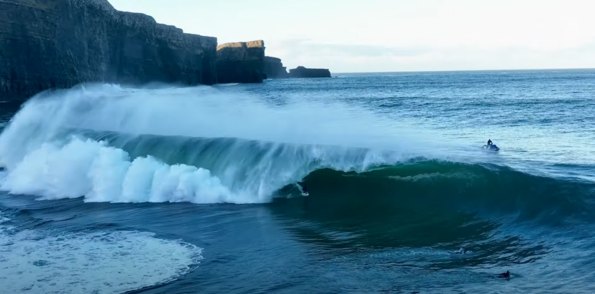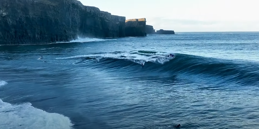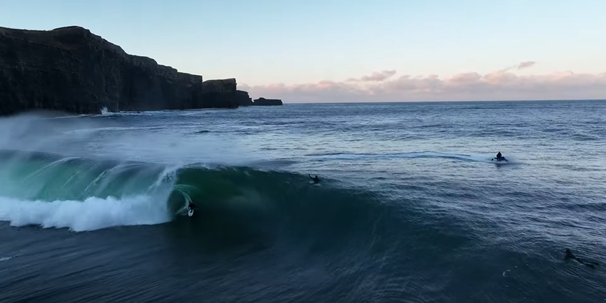 Ce mois-ci, à l'entrée de l'hiver, le slab irlandais de Riley s'est animé en version XXL. Avec les falaises de Moher en arrière-plan, cette dalle dure attire de nombreux surfeurs de grosses vagues à la recherche de tubes profonds et difficiles.