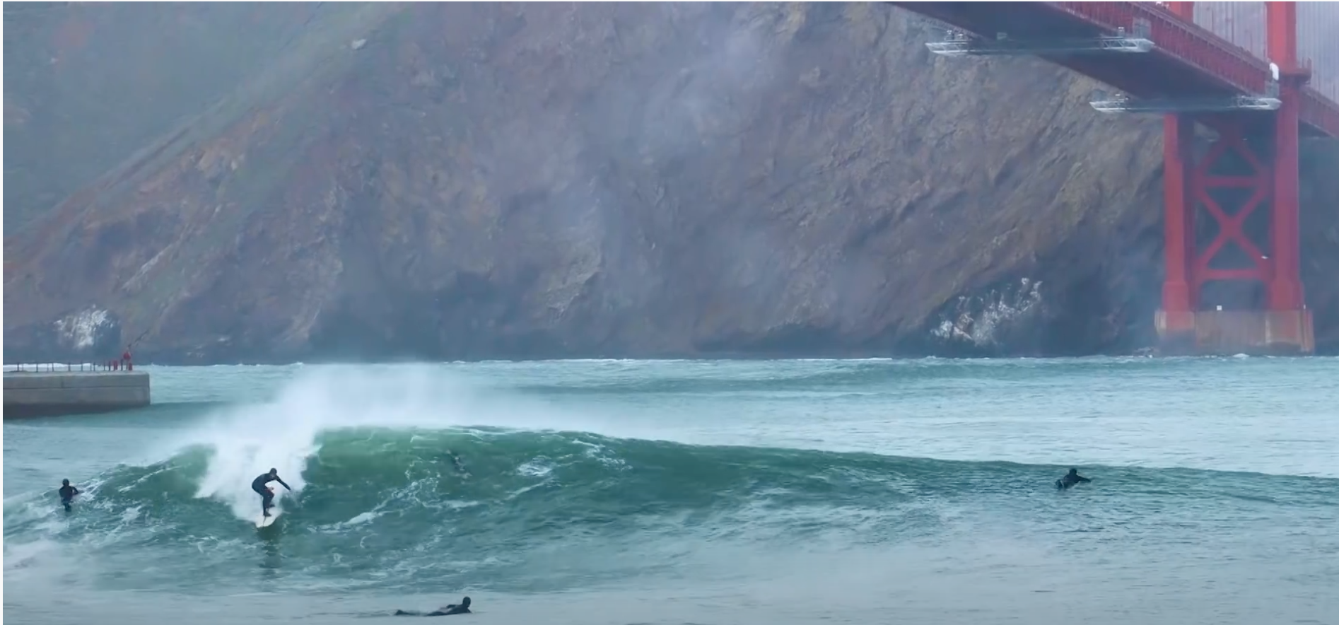 La semaine dernière les locaux ont pu placer de jolies manoeuvres dans ce décor original, au pied du pont le plus célèbre de la côte Ouest. San Francisco est connue pour beaucoup de choses (et moins pour le surf que le sud de la Californie), les surfeurs y sont moins nombreux à déferler sur les spots. Mais bien que la scène surf de San Francisco soit un peu plus dans l'ombre, elle est vigoureuse et possède une identité forte.