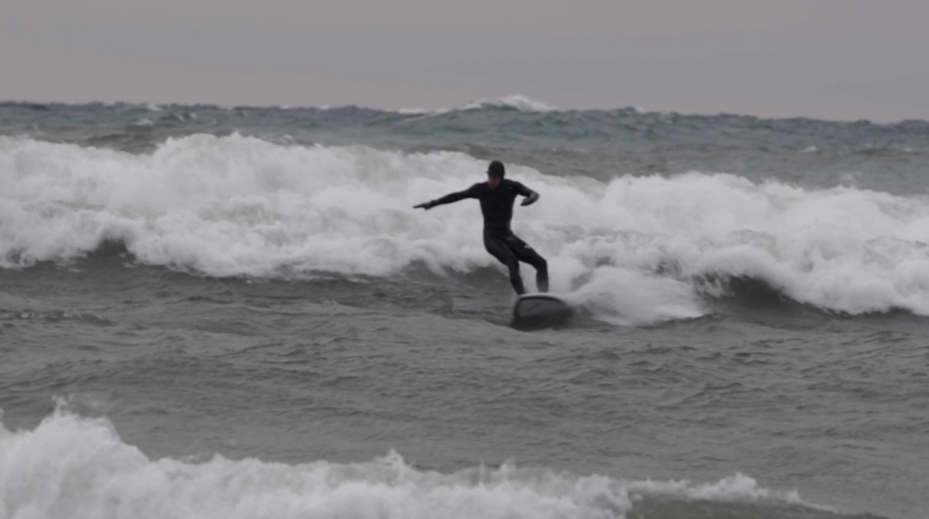 Aurélien B-P : « Après avoir surfé sur le lac Ontario depuis 12 années et aussi le lac Erié et Huron, je décidai de finalement surfer sur le lac Michigan. En effet, les vagues y étaient spectaculaires et c'était à 16 heures de route du lac Ontario. Surfer le lac Michigan était un rêve depuis des années, surtout au nord ! Un ami me donna un coup de téléphone me promettant la meilleure vague du lac, en effet les photos étaient spectaculaires alors je pris la route.