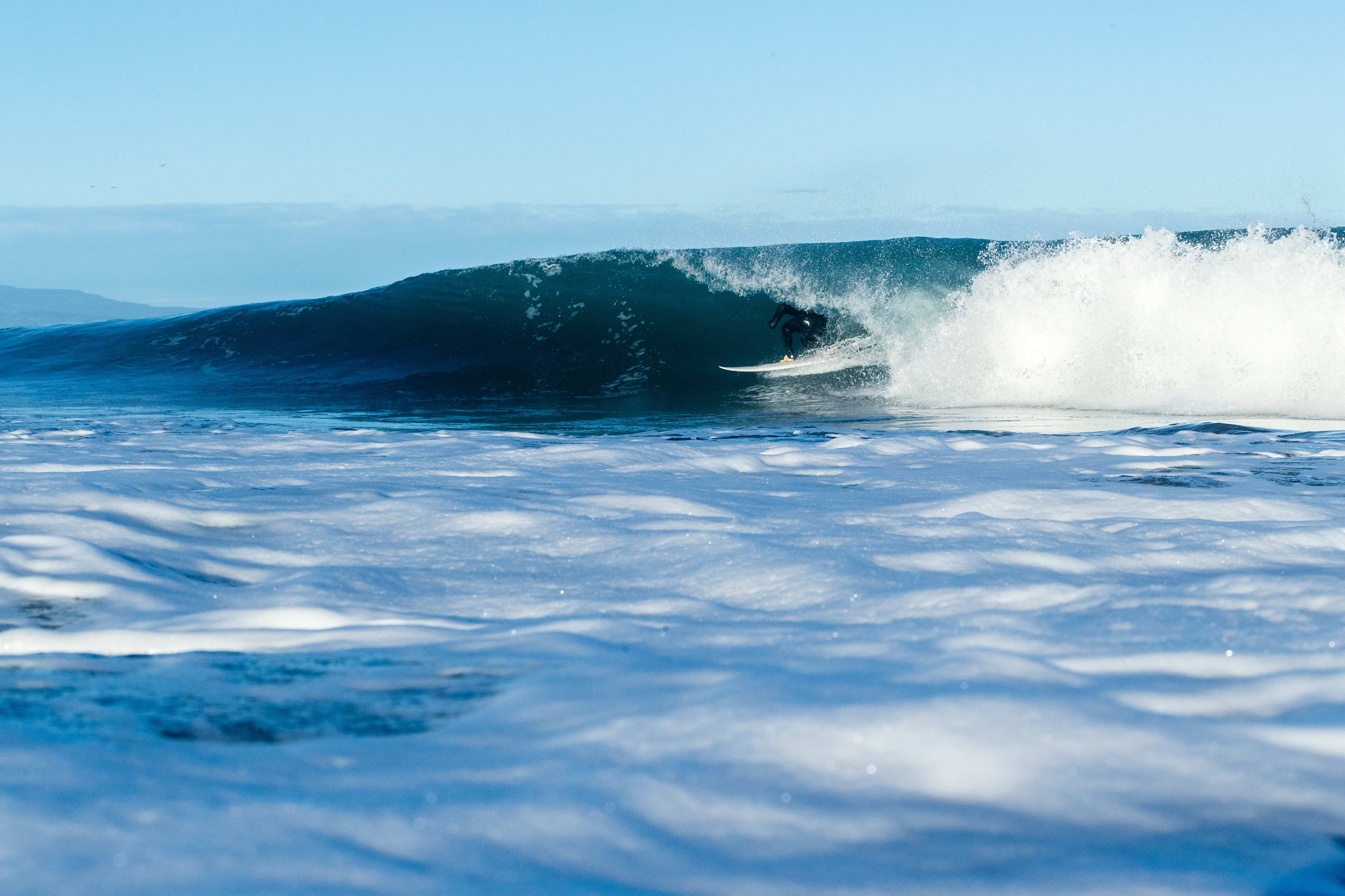 Le swell arrive, mais est finalement un peu moins gros que prévu. Nous nous mettons sous la dent le fameux spot de cette côte où la vague déroule sur des centaines de mètres de banc de sable. C'est assez ahurissant de voir ça de ses propres yeux. J'ai d'ailleurs du mal à y croire ; un endroit bien préservé du fait de son climat froid, mais de qualité de classe mondiale.
