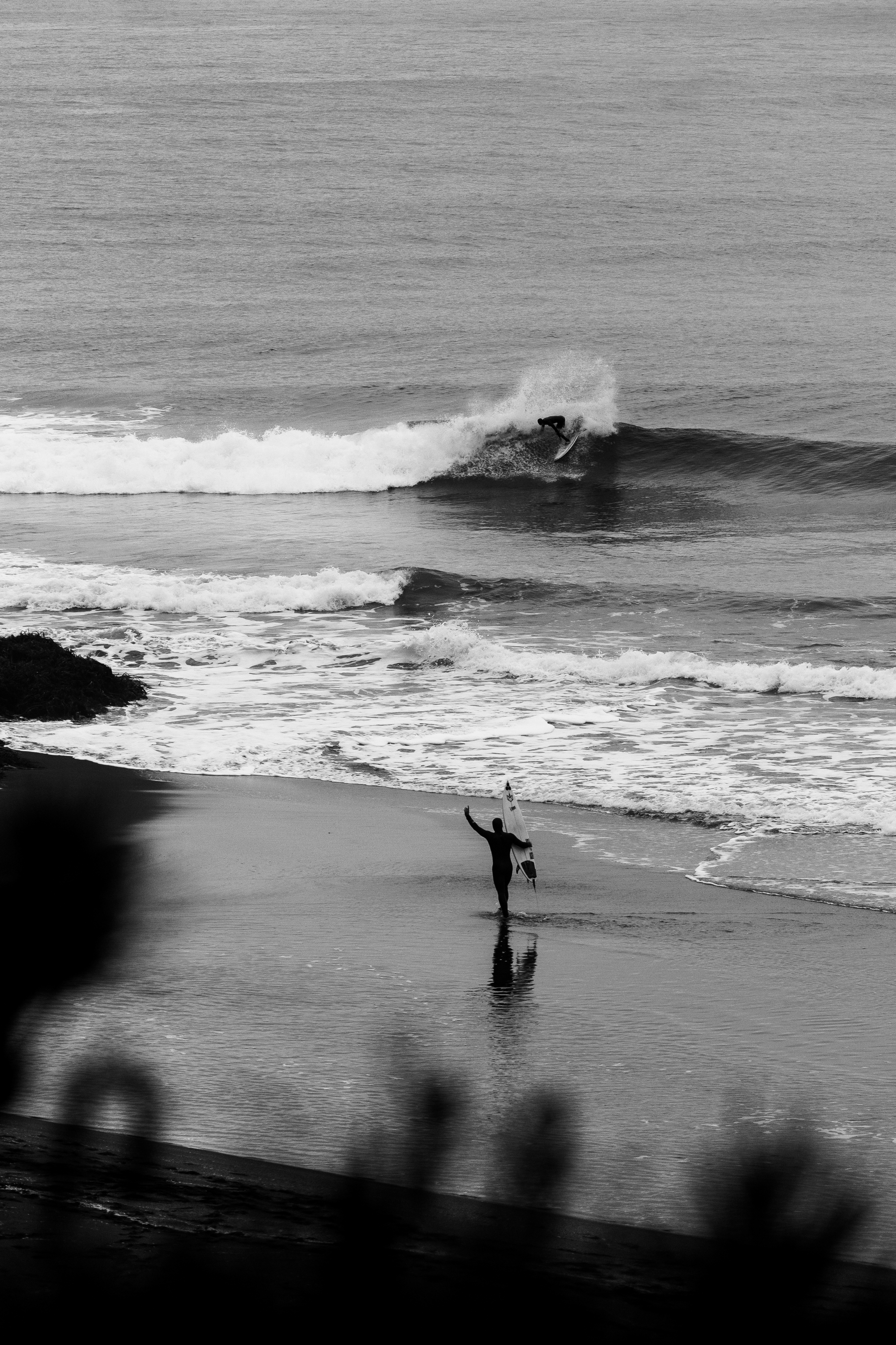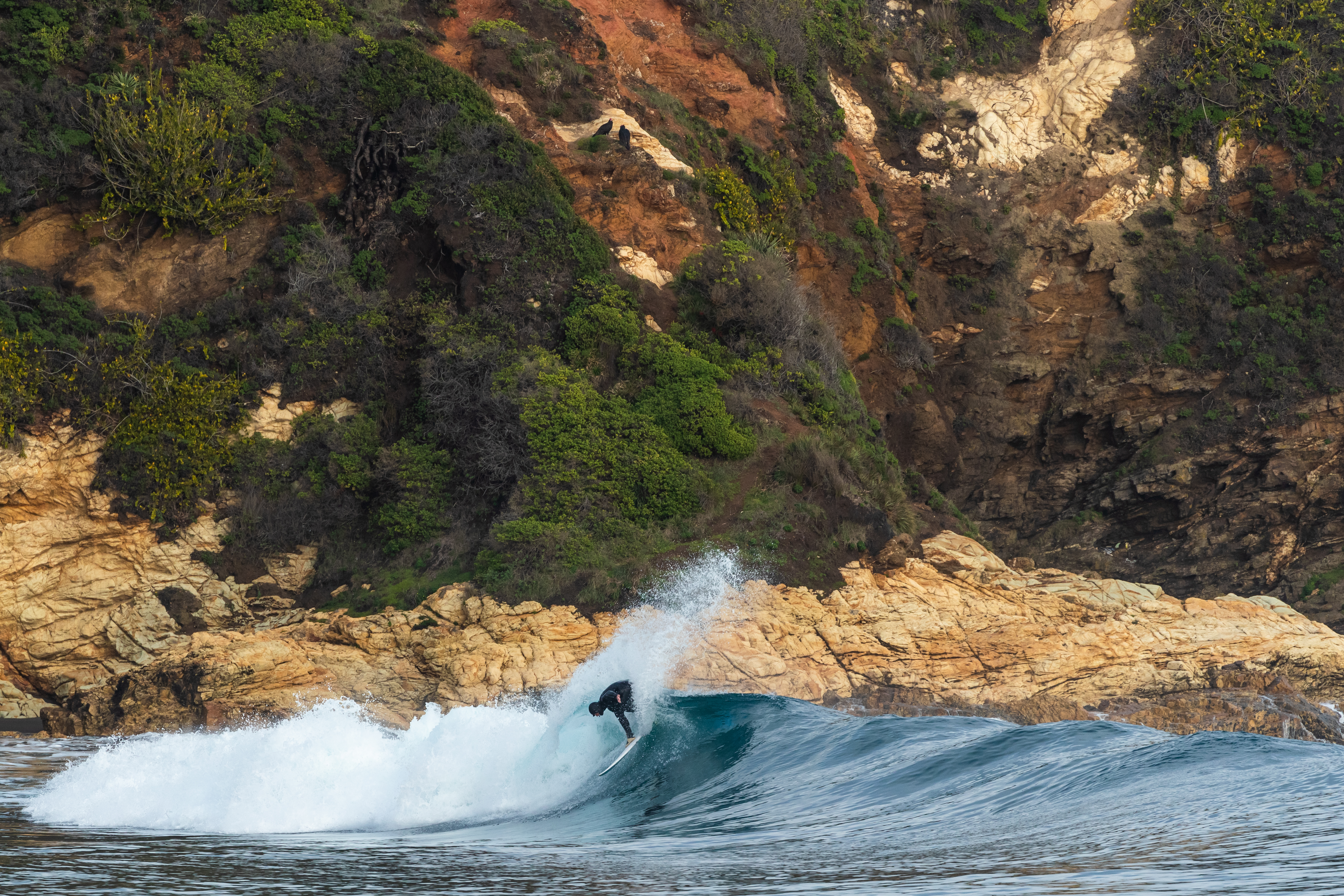 Durant les derniers jours, nous apercevons quelques pics tubulaires au détour d'une baie. Nous nous rapprochons, et par chance nous tombons sur un beach break de type landais, avec des tubes droites-gauches et entièrement offshore. Ce n'est pas gros, peut-être 1m20, mais nous sommes seuls et nous n'avons pas besoin de grand-chose d'autre.