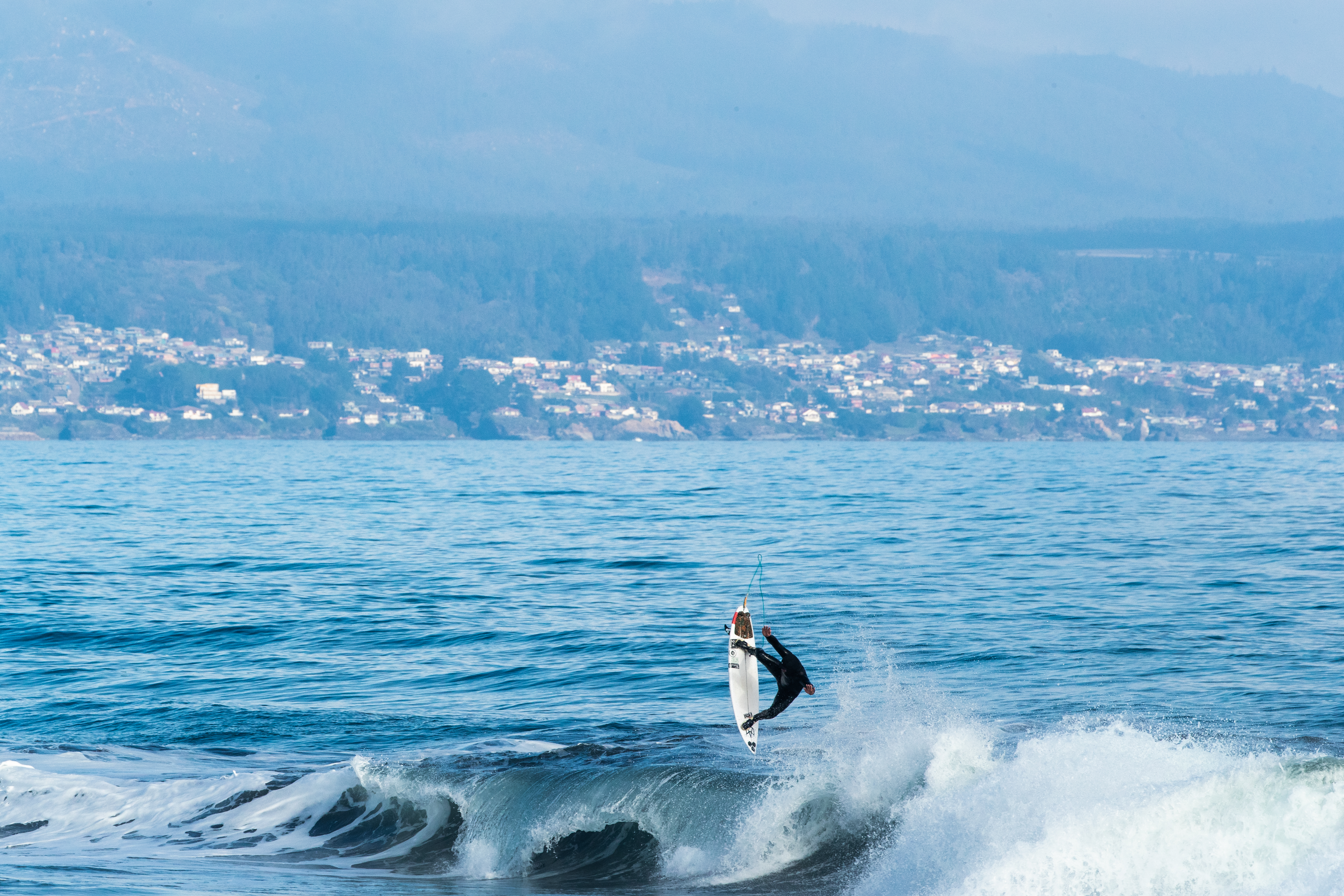 Après une demi-journée de route, nous arrivons sur la zone de surf. Les paysages sont éblouissants. Nous sommes très proches de la Patagonie, et ça se ressent. Il y a du vert partout, et les baies et les plages sont magnifiques. Il fait froid, mais je me sens bien. On dirait un mélange entre le Canada et le Mexique. C'est assez drôle, mais c'est l'idée que je me fais au premier abord, surtout avec ce sable noir et ces grandes forêts de pins et d'eucalyptus.