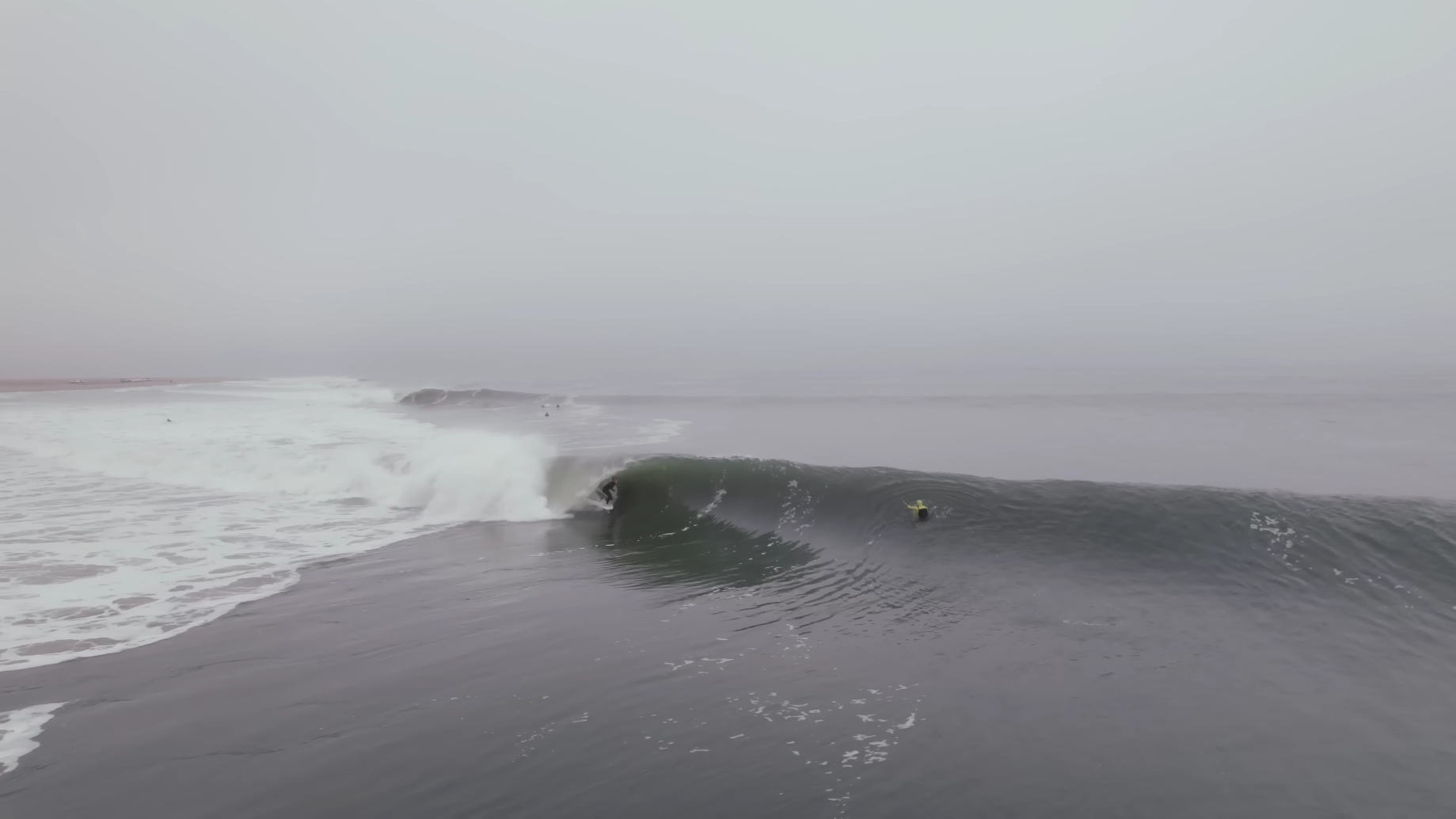 Ce jour-là, impossible de filmer depuis la plage, comme c'est habituellement le cas. La vague est tellement longue et parcourt une telle distance qu'il faut s'équiper d'un drone si l'on veut en capturer ne serait-ce qu'un tiers.