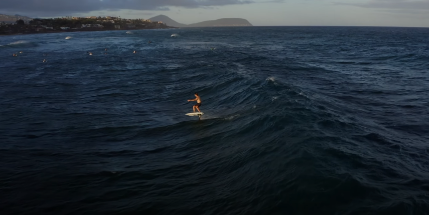 Ici à Hawaï, Andrew et Kawika ont pu profiter d'une session au large sous un vent léger, au coucher du soleil. En voix off, on découvre aussi leur approche de cette session : une ligne extérieure pour Andrew dans un premier temps, un tout droit au travers des vagues pour Kawika.