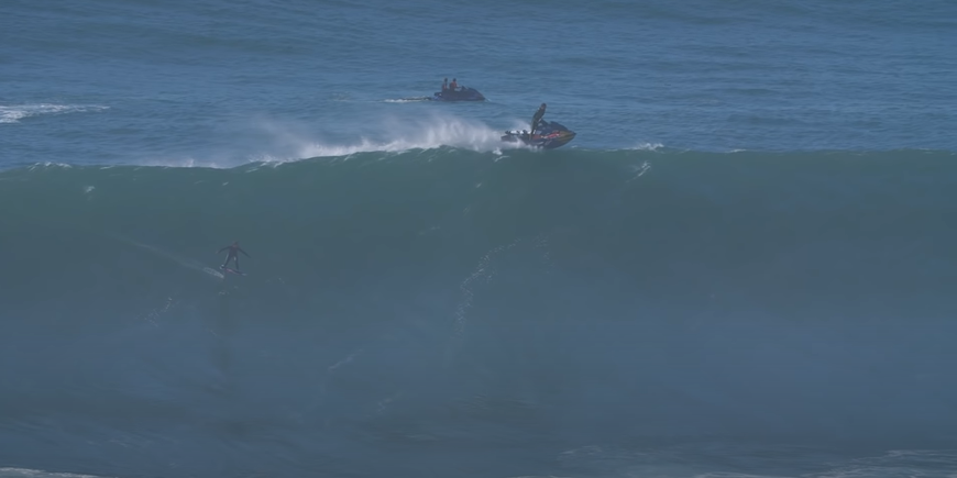 Cette fois à Nazaré, c'est en foil que Kai a décidé de se challenger. Un challenge relevé haut la main, au vu des lignes qu'il a tracé sur les vagues qui se dressaient ce jour-là, et des réactions impressionnées des spectateurs présents en nombre. Sa versatilité n'a pas manqué d'être saluée, alors que le chargeur a déjà en tête une prochaine session, où il pourra sortir le foil sur une vague "vraiment géante".